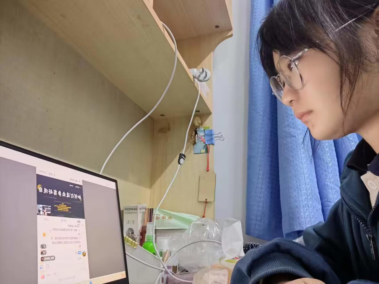 学生干部在认真观看直播