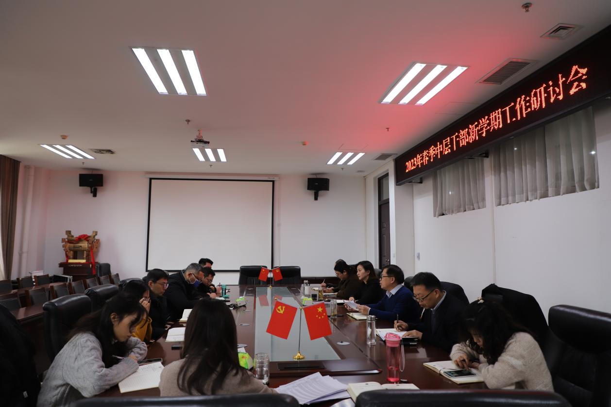 在龙子湖校区教学楼A310会议室召开2023年春季中层干部新学期工作研讨会,研究部署春季学期开学及重点工作。太阳城App