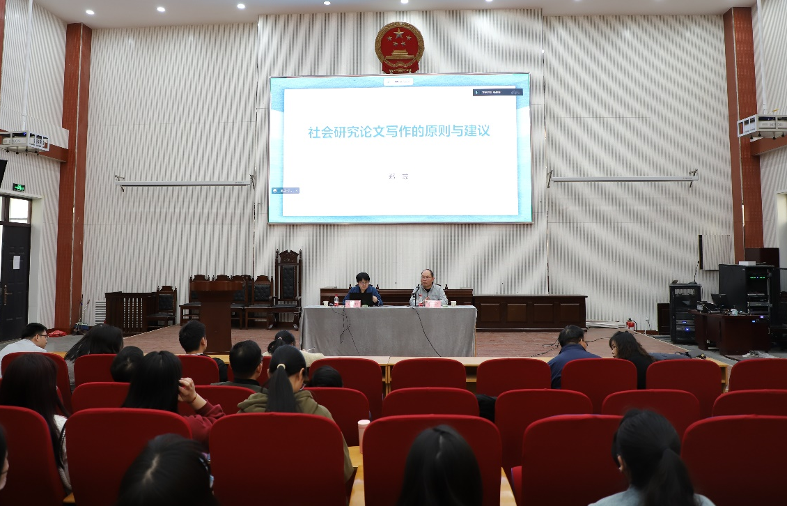 师生作题为“社会研究论文写作的原则与建议”的学术报告。副院长李伟、部分教师及研究生参会,报告会由李伟主持。