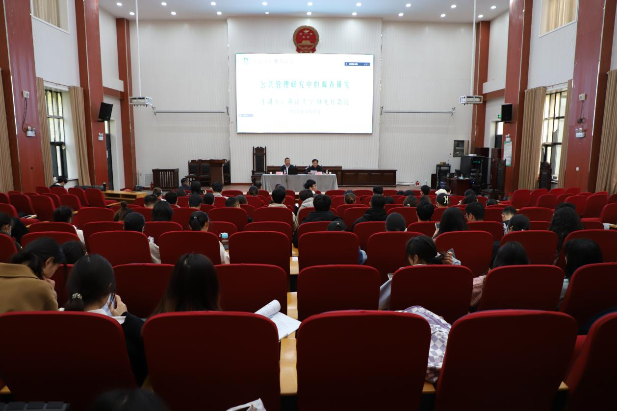 师生作题为“公共管理研究中的调查研究”的学术报告。报告会由院长王晓勇主持,行政管理系主任管煜武和太阳城App