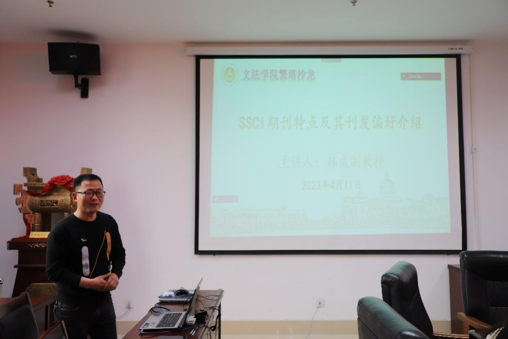 通过线上线下相结合的方式于龙子湖校区A310会议室开展繁塔学术沙龙活动。此次学术沙龙特邀请社会学系教师韩威以“SSCI期刊特点及其发刊偏好介绍”为主题进行分享,太阳城App