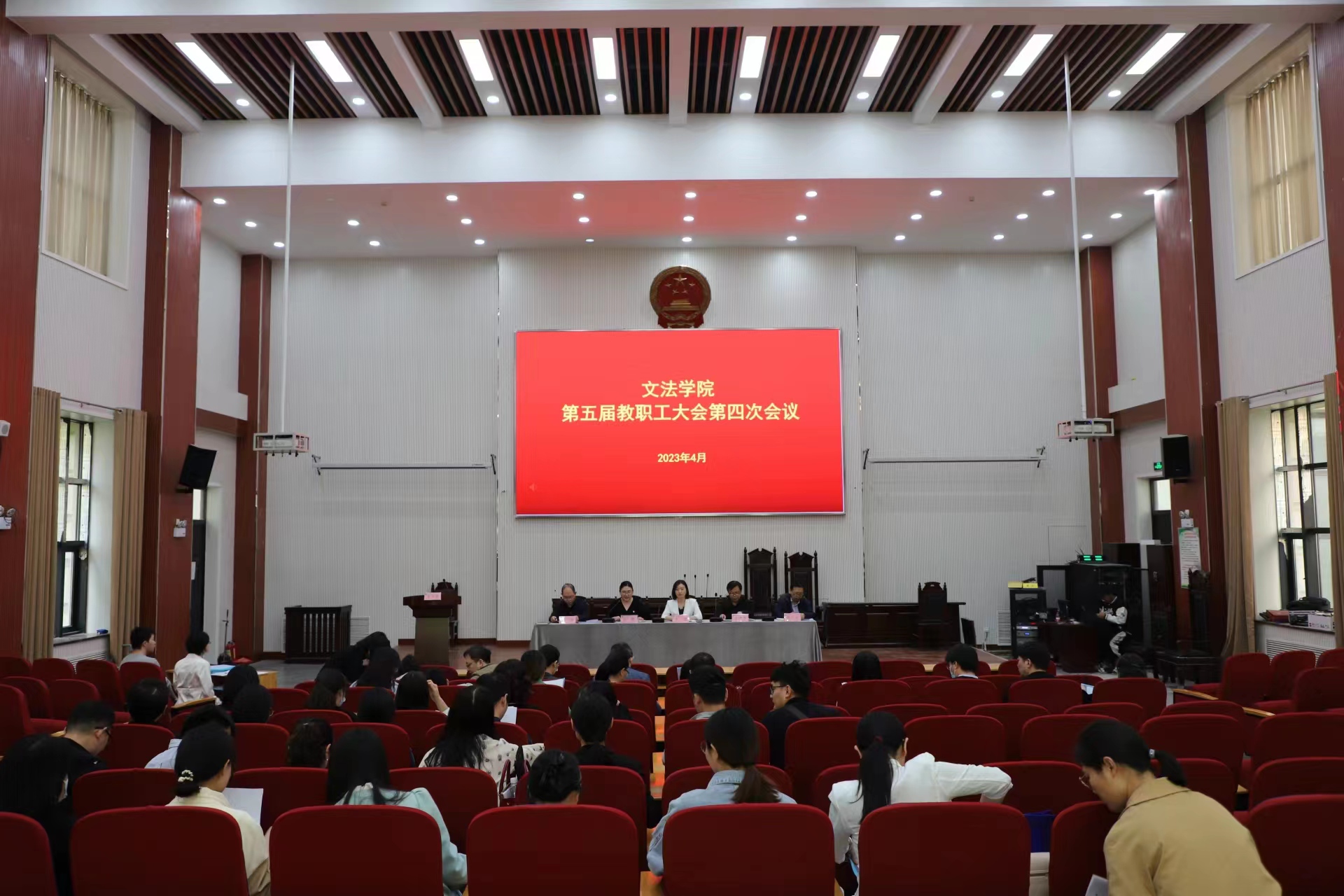 第五届教职工大会第四次会议。全体教职工参加会议,会议由院党委副书记余果主持。