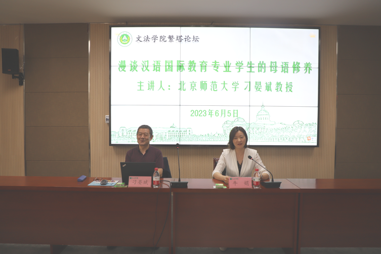 党委书记牛娟主持,汉语言文学系教师以及汉语国际教育专业全体学生参加报告会。