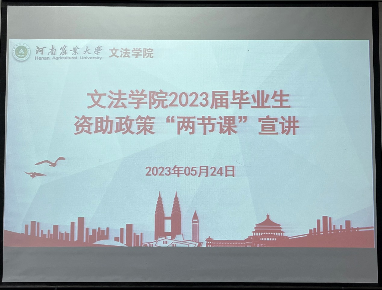 于龙子湖校区繁塔楼开展2023届毕业生资助政策宣传“两节课”活动,院团委书记王鹏举及2023届毕业生代表参加。