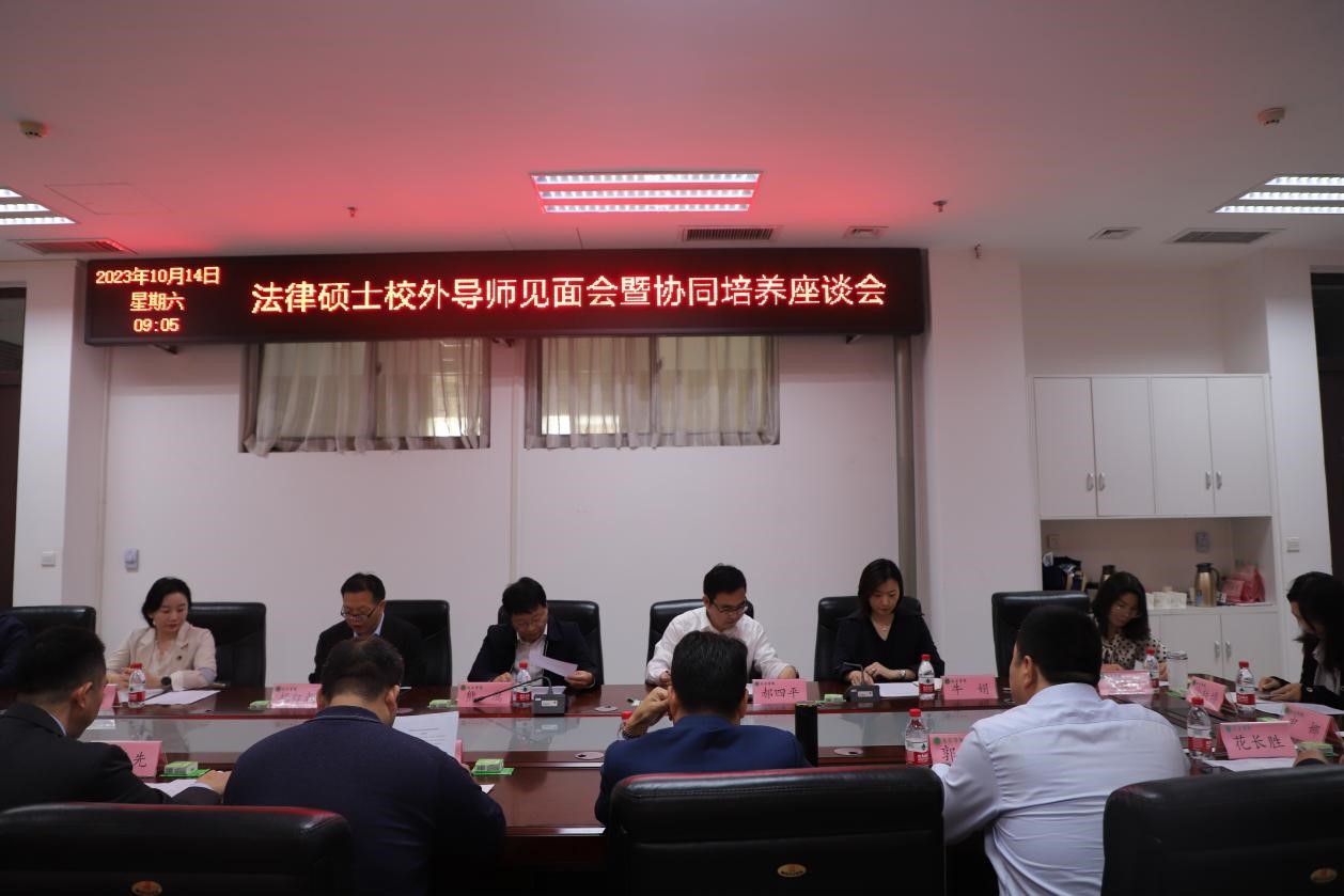 会议室举行法律硕士校外导师见面会暨协同培养座谈会。座谈会由副院长杨红朝主持。