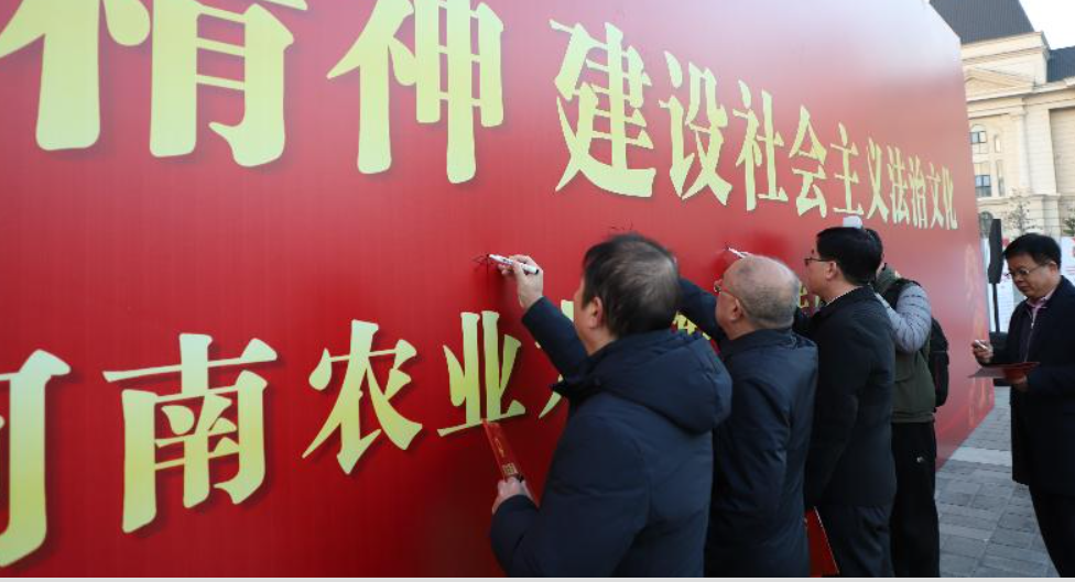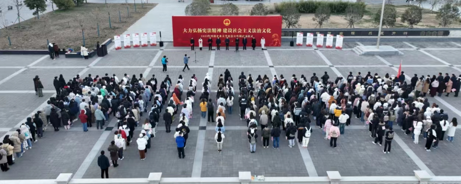 在龙子湖校区中心广场举办了以“深入学习宣传习近平法治思想 大力弘扬宪法精神”为主题的宪法宣传周启动仪式。校党委副书记游舸,副校长郭战伟,校党委委员、宣传部长邓振营,校党委学生工作部部长、学生处处长徐峰,校团委书记贾云飞,校党委研究生工作部部长代莉,校政策法规办公室主任闫俊萍,太阳城App