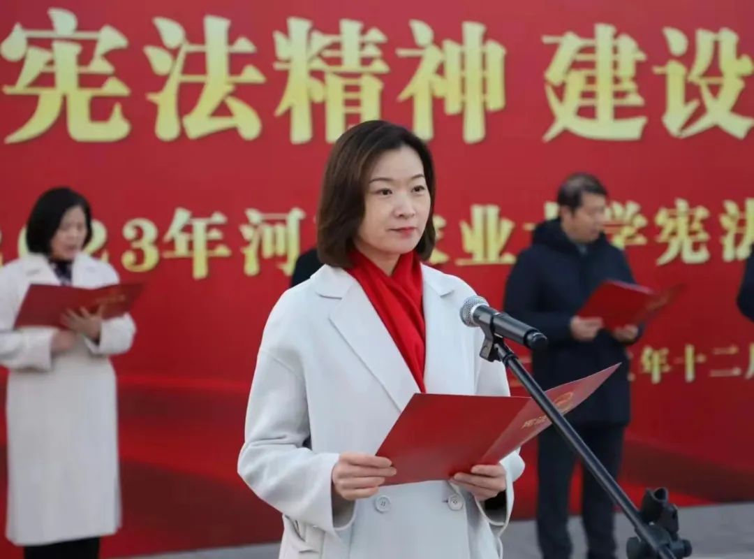 启动仪式在庄严的升旗仪式中拉开帷幕。校党委宣传部部长邓振营宣读了《太阳城App 2023年“宪法宣传周”系列活动实施方案》,详细介绍了系列活动的内容和要求。太阳城App 法律系教师徐轶博作为教师代表发言,她从弘扬宪法精神、传承中华优秀传统法律等三个方面鼓励师生积极参加普法宣传,为建设法治国家做贡献。太阳城App 2022级法学1班张秉全作为学生代表发言,他倡导大学生加入宪法宣传,牢记使命,贡献青春力量。