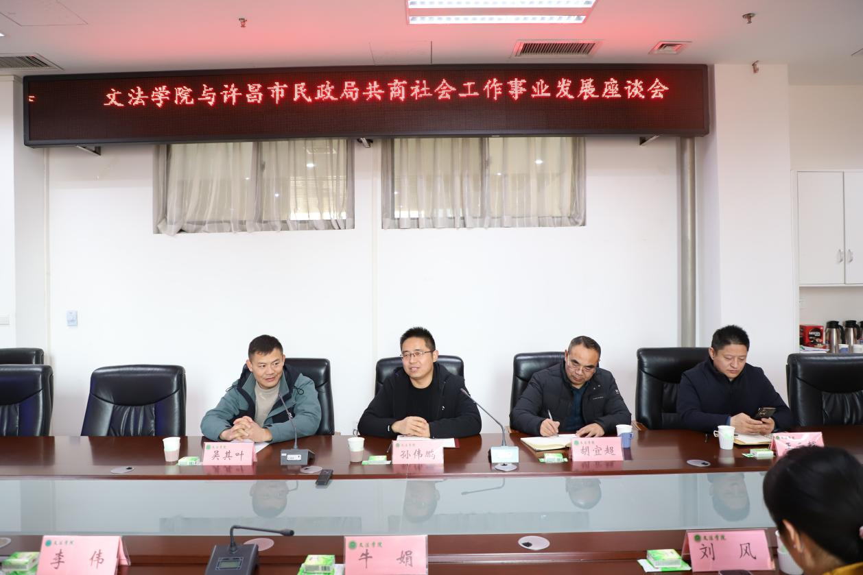 会上,牛娟介绍了社会工作专业发展情况、学生培养特色和就业情况。孙伟鹏介绍了许昌市和长葛市民政事业、慈善工作和乡镇社工站发展情况,总结了双方前期在社会工作人才队伍联合培养、实习基地建设、社会服务项目开发等方面的合作成果,阐述了双方在新的一年里要进一步夯实前期合作领域,并重点在实践教学基地建设、师资交流、民政问题研究、社会组织孵化等方面探索新的合作方向。