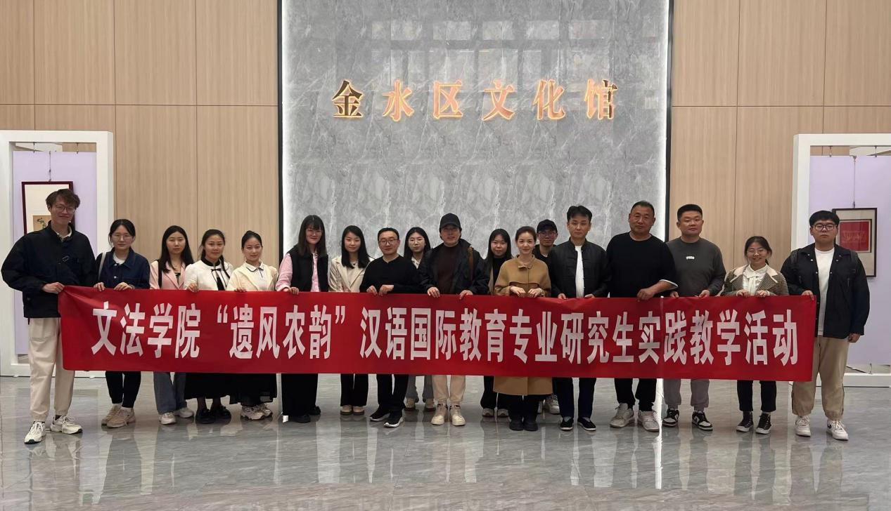 汉语言文学系主任刘华带领2023级国际中文教育专业研究生赴郑州市金水区文化馆参观交流。金水区文化馆馆长马利亚、主任贺庆华、非遗项目代表人袁升科、陶运成、李校成及部分文化馆工作人员代表参加活动。