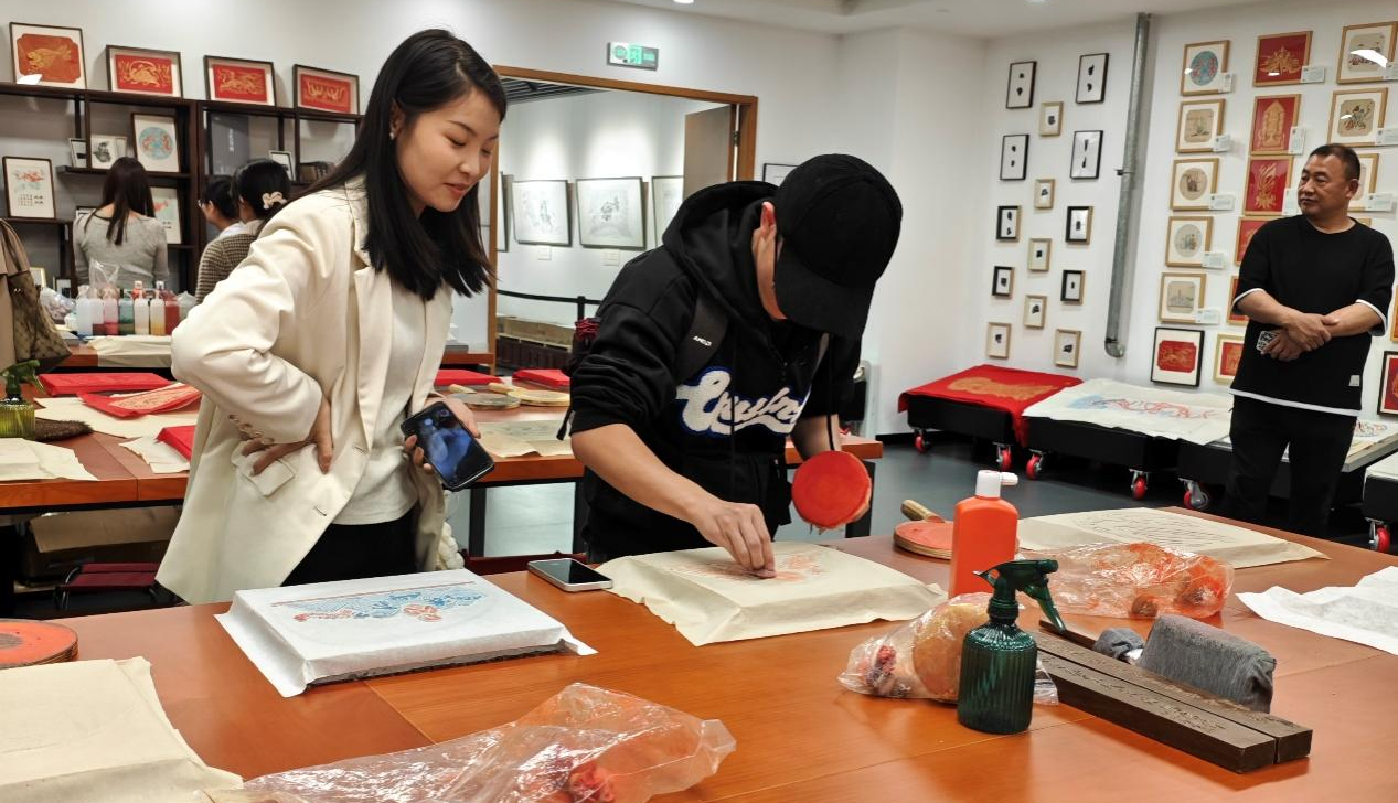 贺庆华带领太阳城App 师生先后参观了4个非遗展览区,通过观看实物展品、听取讲解员的详细介绍,深入了解了金石传拓、剪纸、考古美术、古琴等多种非物质文化遗产的制作技艺和文化内涵。参观中,师生们还参与了互动体验活动,尝试制作非遗工艺品,亲身感受传统艺术的独特魅力。