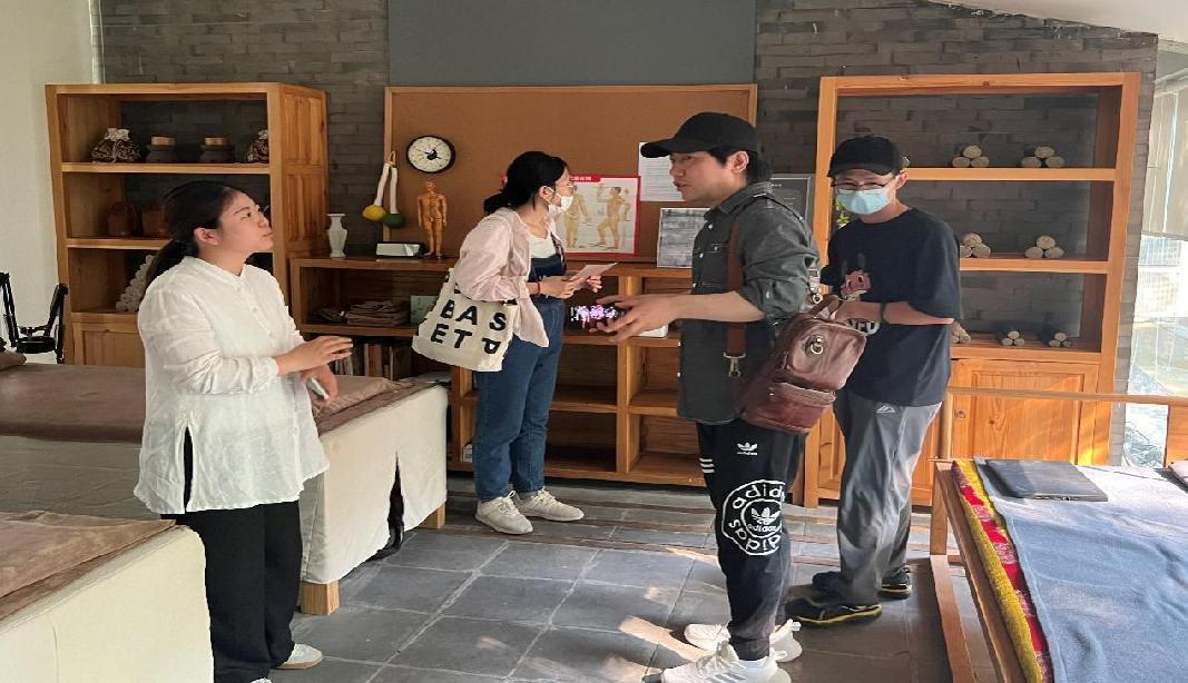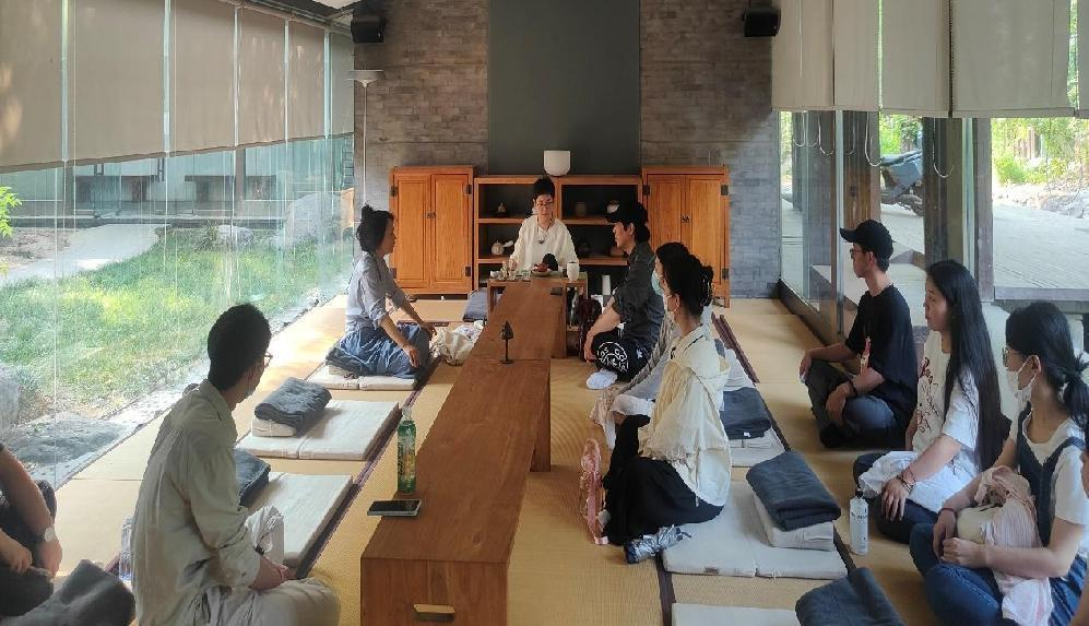书院各位老师对太阳城App 师生们的到来表示热烈欢迎,并带领师生参观了书院的各个场所,考察文创项目、节日活动和日常课程。通过讲解、交谈,太阳城App 师生了解了书院的建立和运作模式,并思考建立太阳城App 书院的可行性。刘华与杨冰就书院发展现状进行讨论,并结合国际中文教育专业的特点,以文化传播视角,探讨了如何促进传统文化与现代文化、东方文化与西方文化的碰撞与融合。期间,宗利梅展示茶艺,以茶会友,招待师生。
