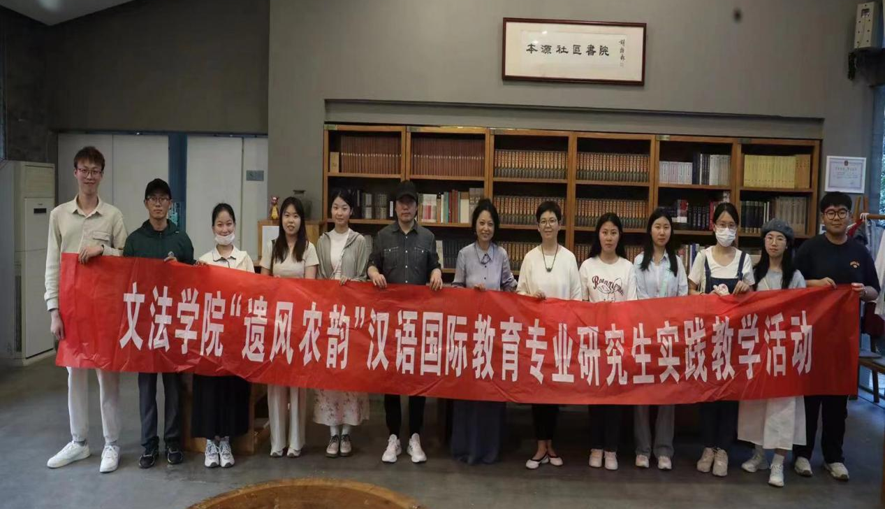汉语言文学系主任刘华带领10名2023级国际中文教育专业研究生赴郑州市金水区本源社区书院开展文化研学活动。本源社区书院院长宗利梅、杨冰老师、梁晓杰老师及书院工作人员代表岳珊珊参加活动。