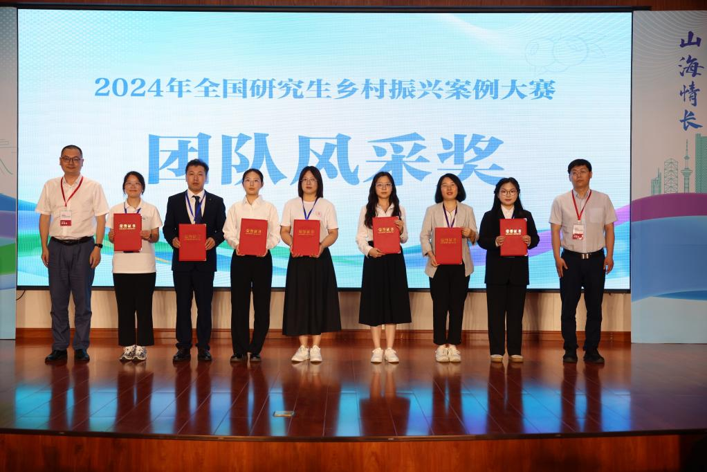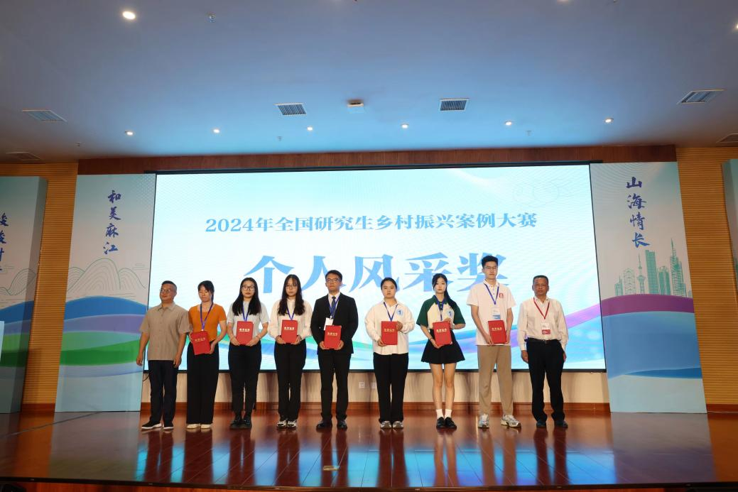 农业管理硕士研究生组成的两支团队在这场全国瞩目的比赛中脱颖而出,斩获佳绩。其中,“三产先锋队”荣获金奖及团队风采奖,团队成员马依帆荣获个人风采奖,“星辰振兴队”荣获铜奖。