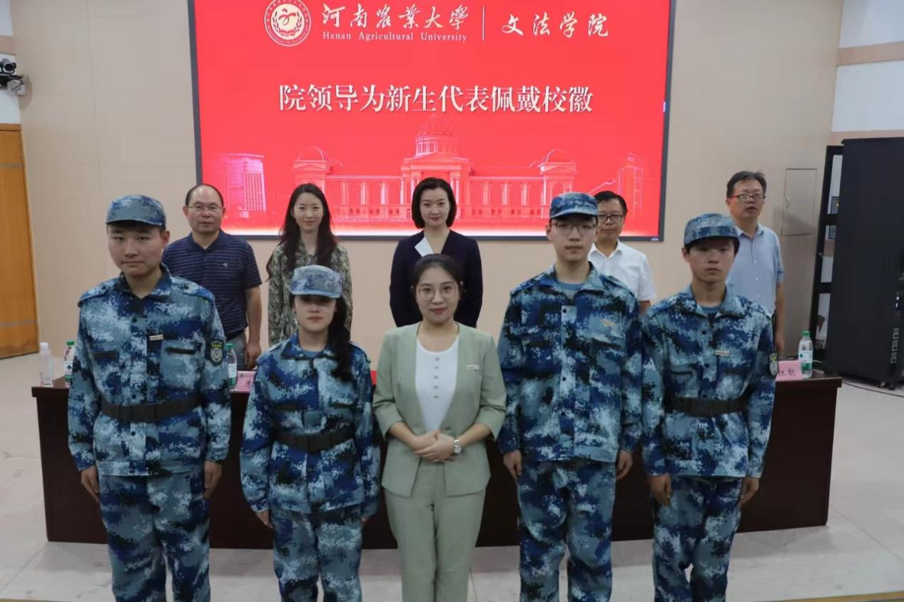 典礼进行到下一个环节,太阳城App 领导为新生代表佩戴校徽。