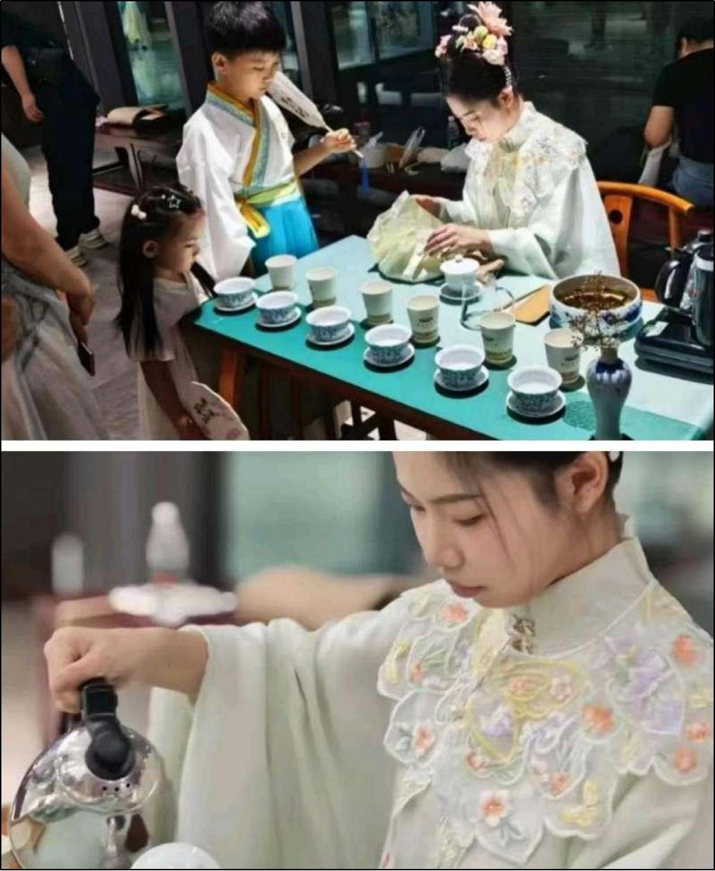 “山中何事,松花酿酒,春水煎茶”,汉语言文学系21级学生王柏钰在博物馆三楼进行茶道展示,吸引了众多游客前来品茶。温杯烫盏,满室生香,慢品茶香,浮世日常。通过此次活动,我们将中国传统茶文化带进了博物馆,用专业所学为弘扬传统文化贡献一份力量。