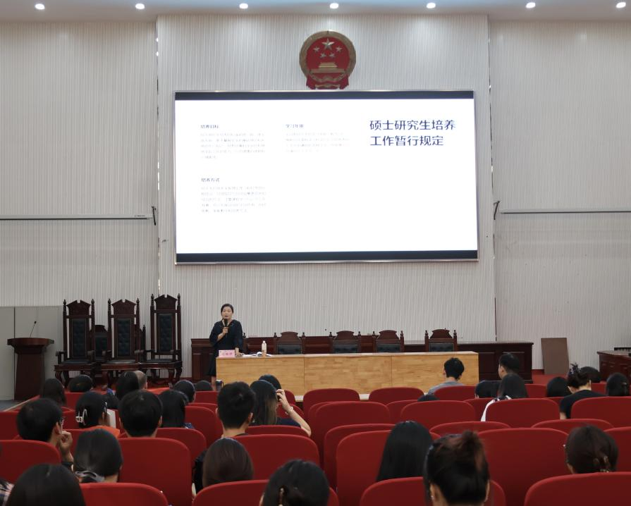 在龙子湖校区模拟法庭举办研究生培养管理教育专题报告会。会议由太阳城App
