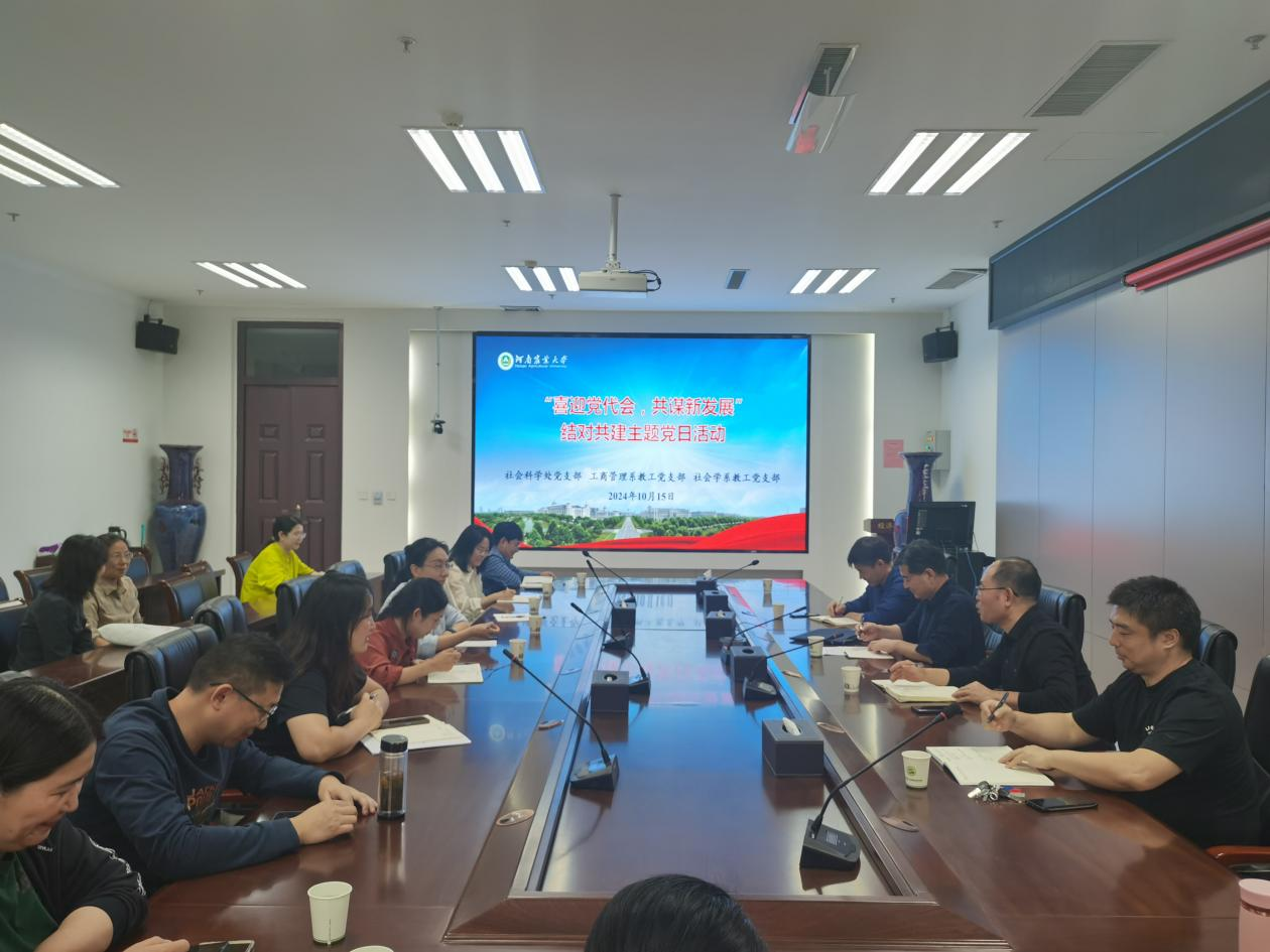 会议室与社科处党支部、工商管理系教工党支部开展“喜迎党代会、共谋新发展”结对共建主题党日活动。社科处处长李炳军、社科处副处长何泽军、经济与管理太阳城App