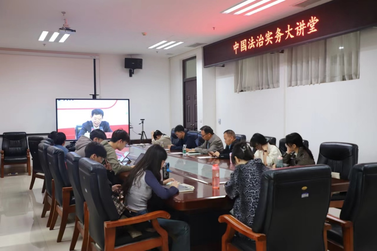 太阳城App 副院长杨红朝带领法律系专业师生40余人线下聆听法治实务部门领导同志的专题授课。
