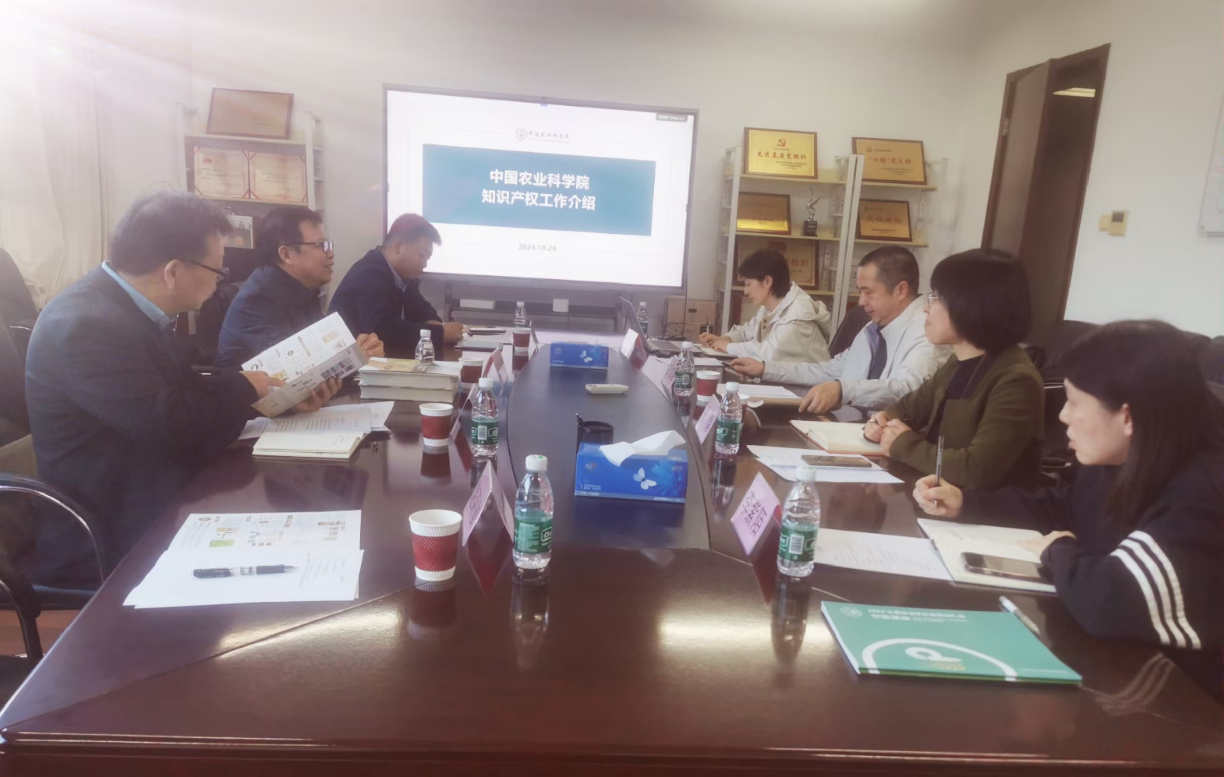 成果转化局局长彭文君、副局长张熠、知识产权处处长李雪和副处长李紫陌就农业知识产权保护和农业科技成果转化的合作事宜进行了座谈。