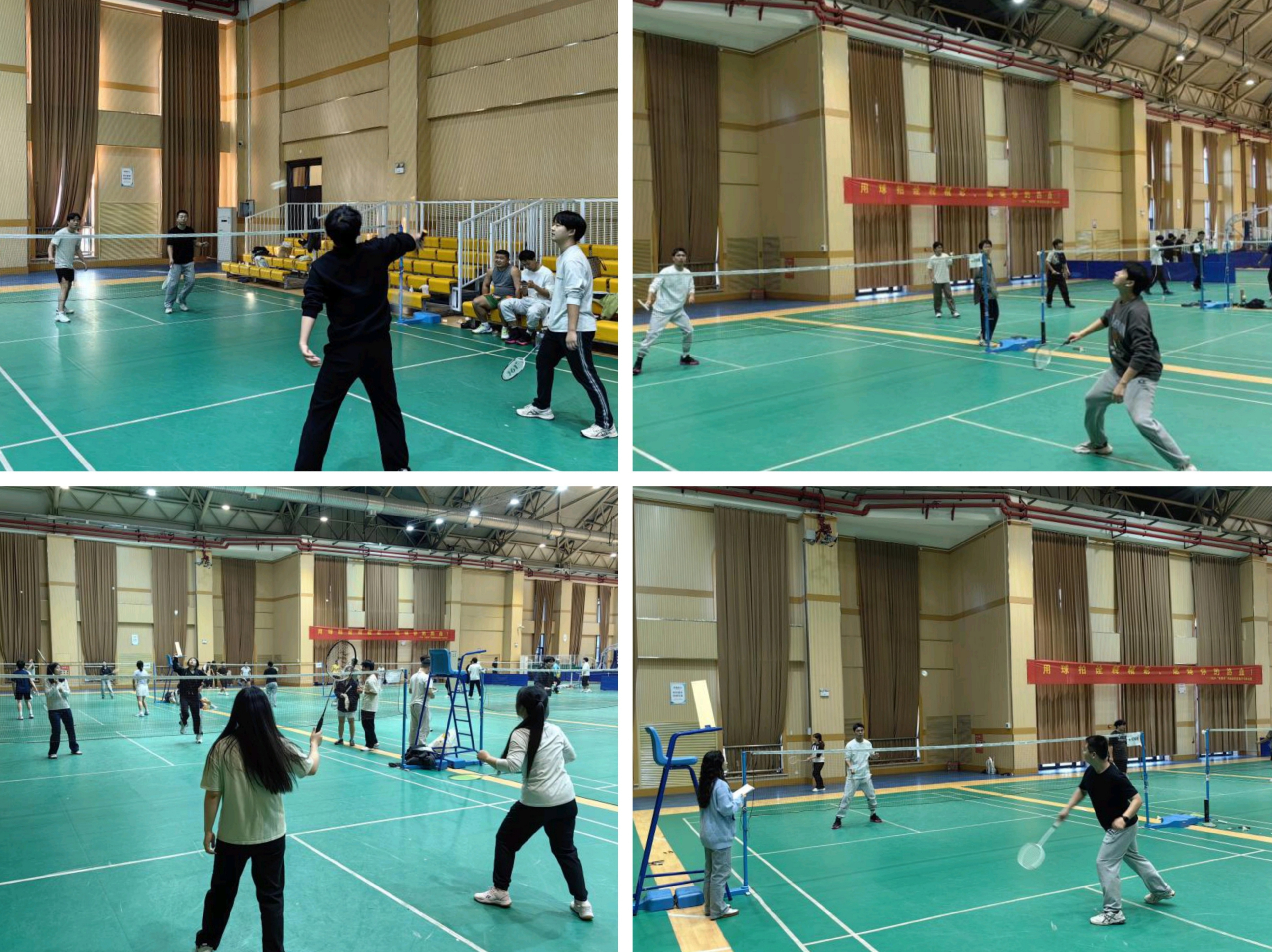 龙子湖校区体育馆,举办以“羽你共成长,文法研途情”为主题的研究生羽毛球友谊赛。此次比赛旨在丰富研究生校园生活,向文法学子提供展现运动魅力、磨砺团队合作能力的舞台。