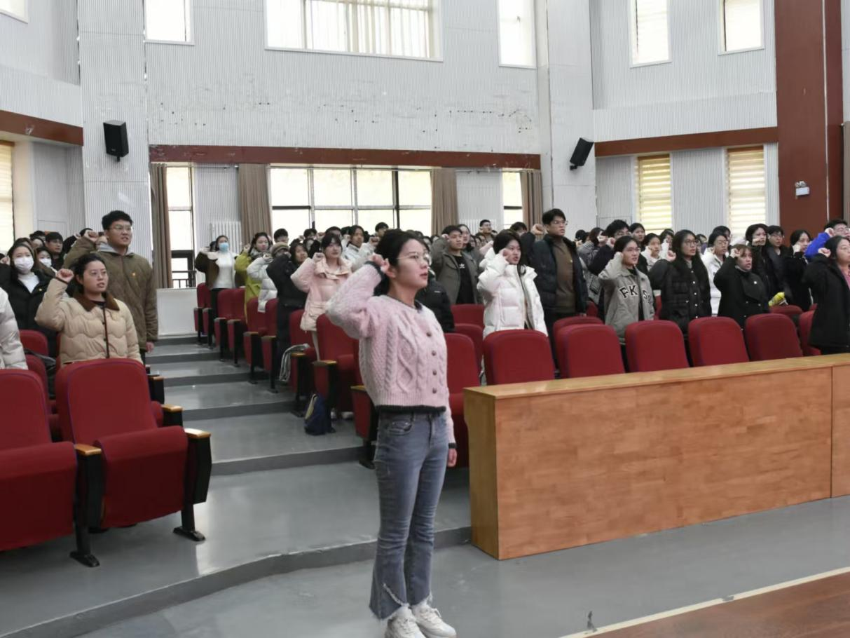 首先,雷明仁围绕入党誓词讲解了入党誓词的演变过程、蕴含的深刻意义以及重温入党誓词的必要性。随后,赵梦闪带领全体学生党员庄严宣誓,学生党员们佩戴党员徽章,面向党旗庄严宣誓。重温入党宣誓仪式的举行,不仅让学生党员们明确了自己的责任,在内心深处根植对党的忠诚与奉献精神,也指引学生党员在面对复杂多变的环境与艰难险阻时,始终坚守党的原则与立场,不偏不倚地沿着为人民服务的方向奋勇前进。