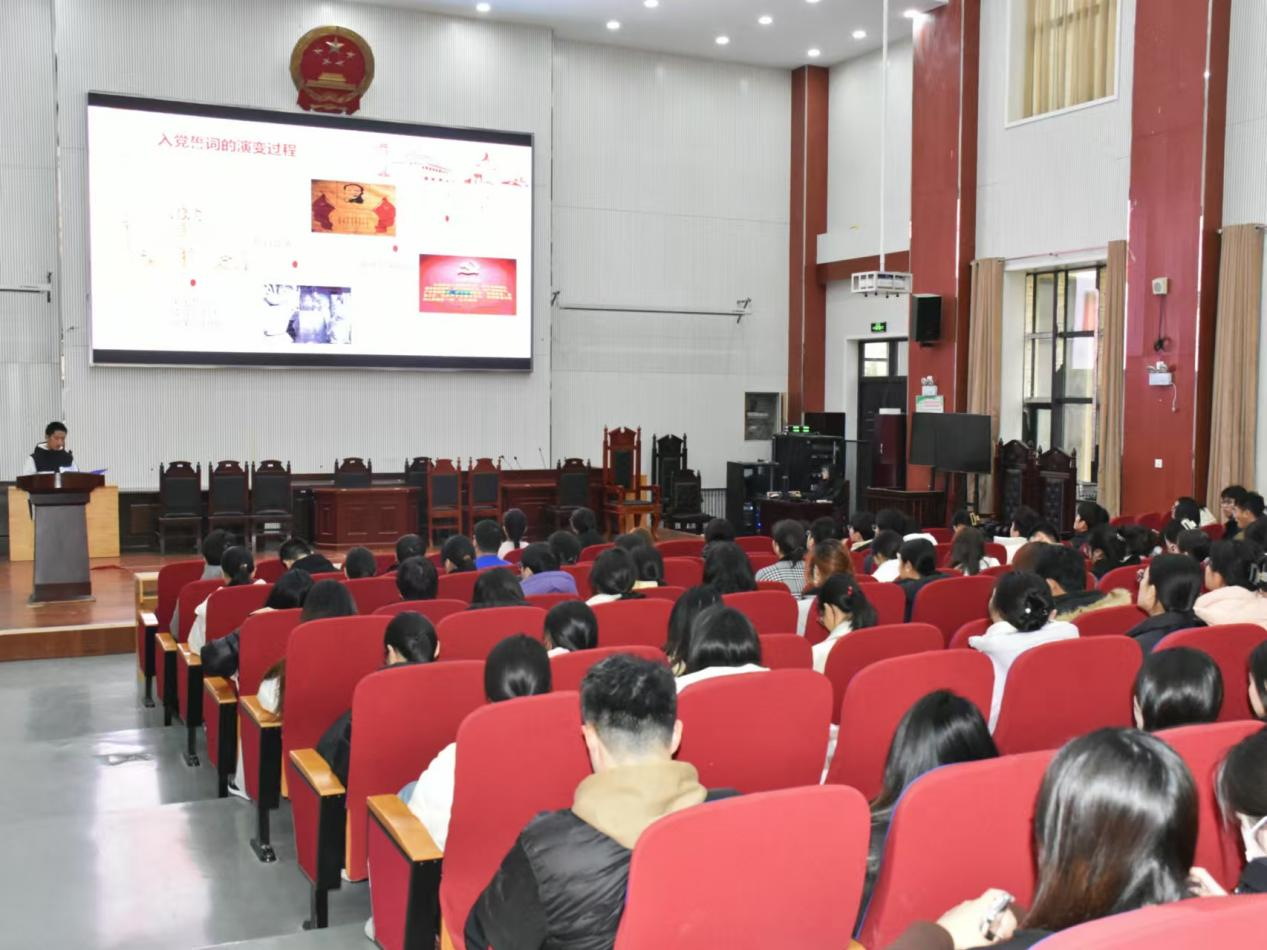 本科生党支部于12月10日中午在繁塔楼BC间大教室模拟法庭开展了“初心如磐,使命在肩”主题党日活动,团委副书记赵梦闪、辅导员盛戈以及全体学生党员参加活动,活动由2023级社会工作专业1班雷明仁主持。