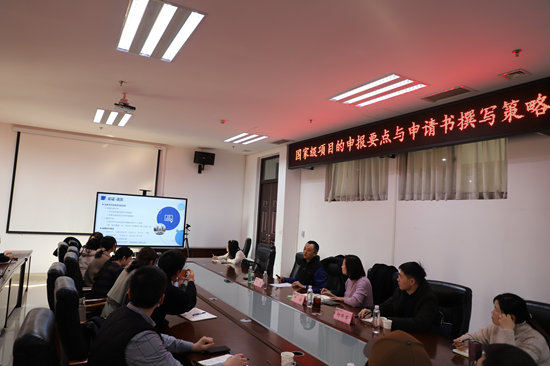 教师作国社科基金项目的申报要点和申请书撰写策略报告会。会议由院党委书记牛娟主持,校社科处副处长何泽军、各系教师参加此次活动。