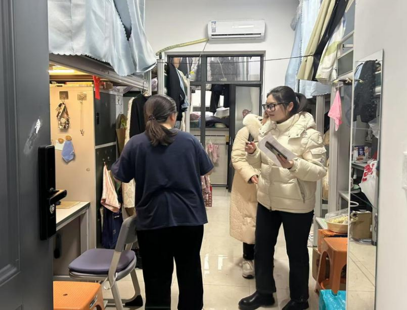 在排查期间,郑亚豪与学生进行了亲切交谈,并重点检查宿舍卫生与安全,强调禁止在宿舍使用违规电器,防止在宿舍内发生火灾。同时,郑亚豪还对学生的基础文明行为进行了指导。他提醒学生要保持宿舍卫生,尊重他人作息时间,合理使用电子产品,养成良好生活习惯,并强调基础文明建设不仅关乎个人形象,更关乎集体和谐与个人成长。