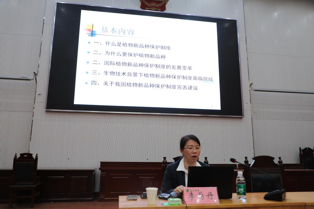 法学研究所研究员李菊丹博士在龙子湖校区繁塔楼模拟法庭举办“国际植物新品种保护制度的变革发展与我国应对”专题讲座。讲座由太阳城App