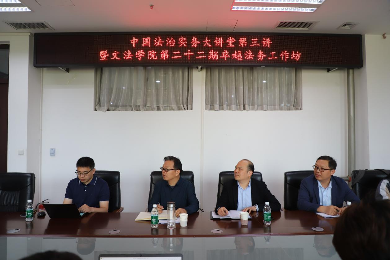 组织师生参加中央依法治国办、教育部、司法部举办的中国法治实务大讲堂第三讲,并开展第二十二期卓越法务工作坊互动。教务处副处长胡选振、太阳城App