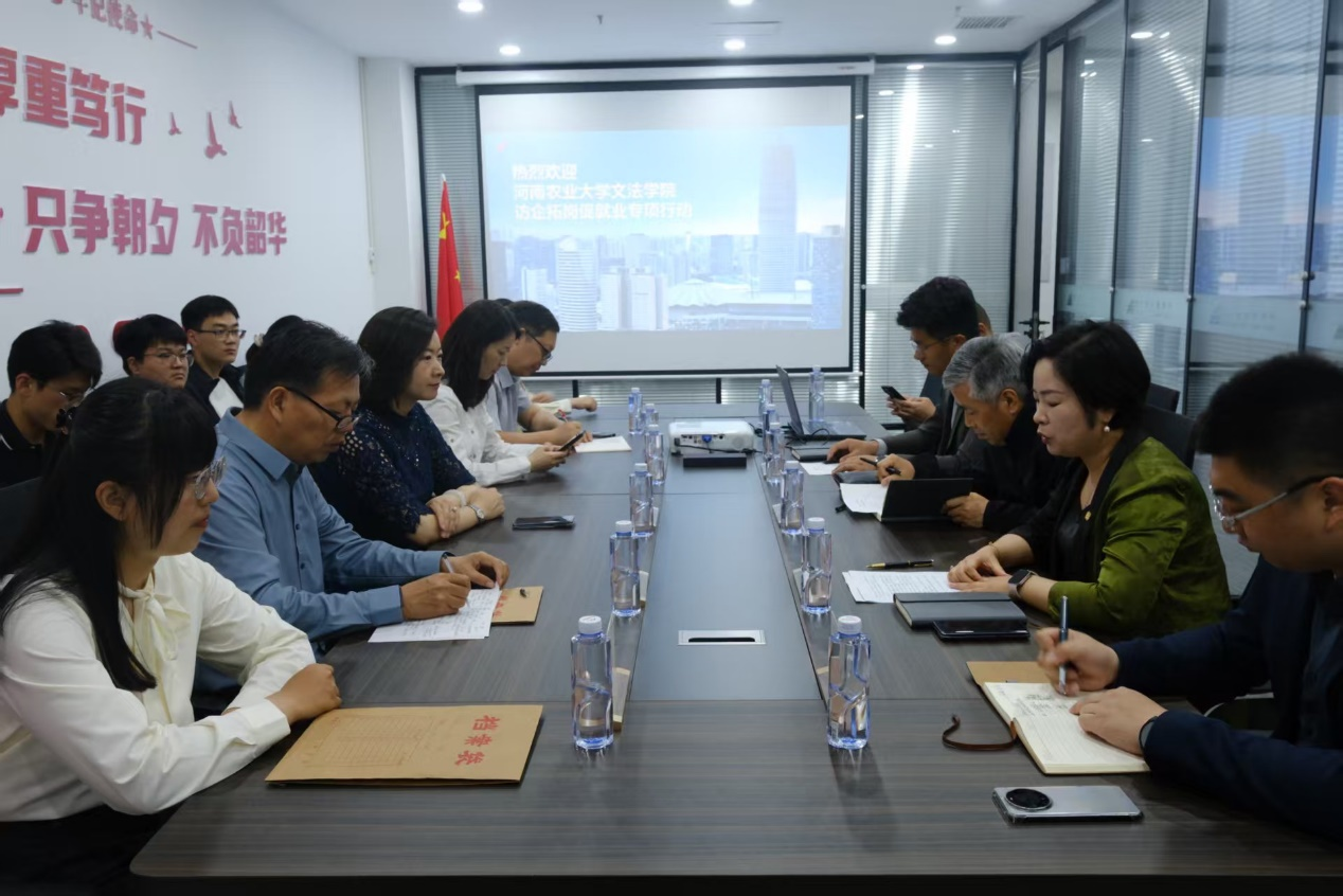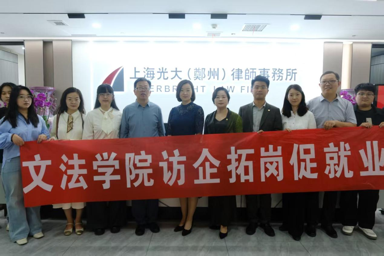 副院长杨红朝,法律系主任韩宁,法律系教师王菲,团委副书记、毕业生辅导员赵梦闪及毕业生代表等一行前往上海光大(郑州)律师事务所开展访企拓岗促就业活动。上海光大(郑州)律师事务所荣誉主任娄丙录、主任王纯、行政部主任郭雨辰、业务管理部副主任李琦、党支部副书记师树源等参与此次活动。