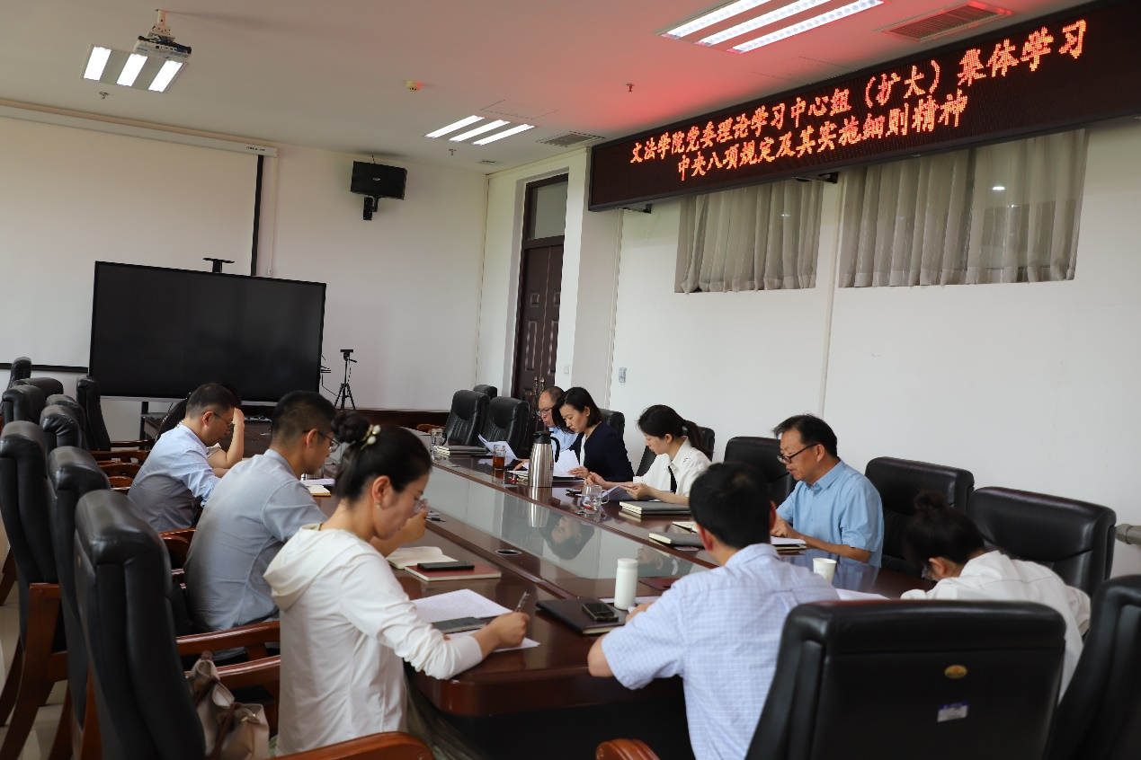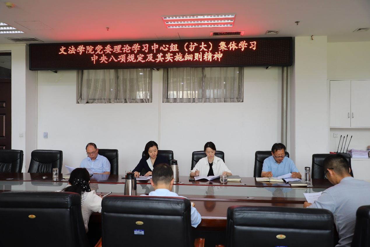 党委理论学习中心组召开扩大会议集体学习会,深入学习领会中央八项规定及其实施细则精神,院党委书记牛娟主持学习,党委理论学习中心组成员以及党支部书记参加学习。