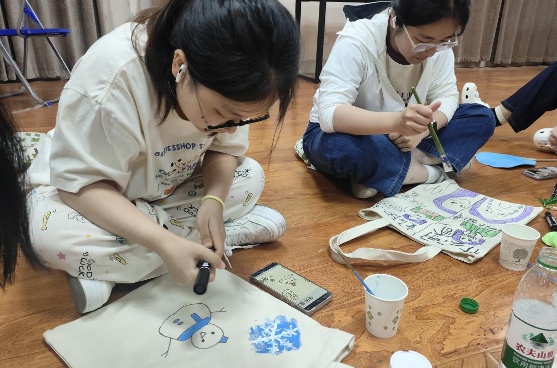 创作完成后,活动进入分享环节。组员们展示各自作品,分享创作感悟。大家表示创作的过程本身就是一种有效的减压方式,看着融入绿植元素的帆布包,成就感与愉悦感油然而生。主持人总结活动,肯定大家的尝试与收获,并预告下期主题。最后布置了一项作业:用彩绘帆布包装上心爱植物,在校园散步,感受自然与艺术的抚慰并记录心情。