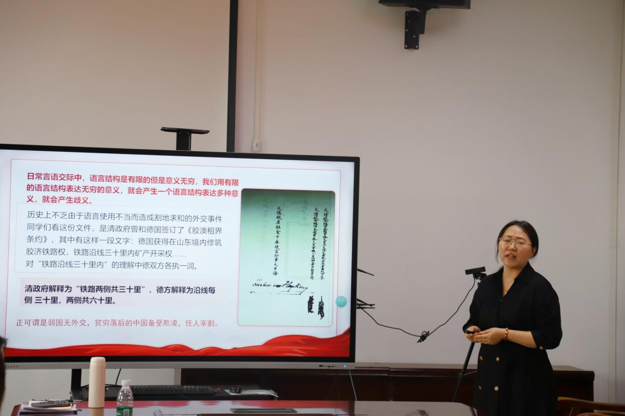 教学展示环节,汉语言文学系教师吴亮深入剖析语言歧义,围绕其概念、类型、产生原因展开讲解,引导大家以“审问之、慎思之、明辨之”的态度正确认识语言歧义现象。其深入浅出的讲解,让在场教师对语言的复杂性与魅力有了更深刻的理解,为语言类课程教学提供了新思路。随后,法律系教师贾秋宇以独特视角从“看法宝、学古事、思今日”三个阶段进行讲述,通过生动的案例和清晰的逻辑,将传统司法智慧与现代法治理念相结合,让在场教师感受到法治文化传承与发展的重要性,为法学课程教学注入新活力。