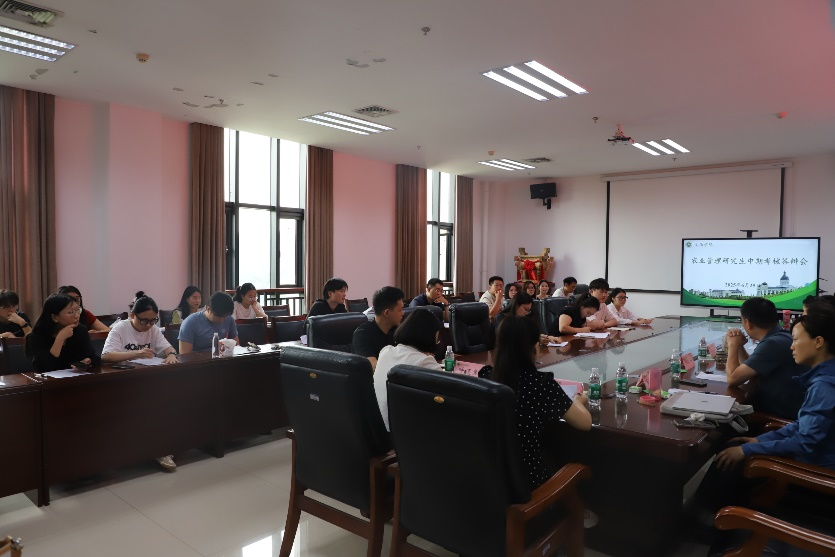 会议室顺利举行。农业管理专业系主任管煜武担任评审组组长,农业管理专业全体教师、2023级全体研究生共同参会。