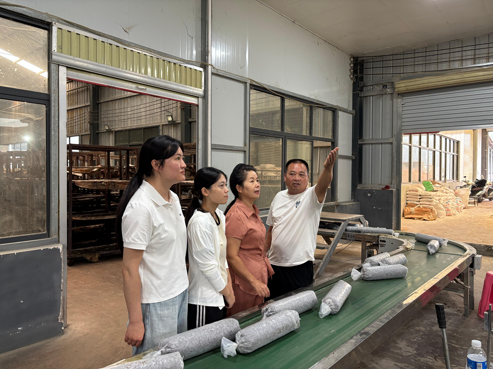 调研期间,赵意焕和所带研究生在鲁山香菇科技小院依托的鲁山九九乡情香菇生产基地深入体验了配料搅拌、菌棒装箱灭菌等生产劳动,并与鲁山县科协及部分香菇企业负责人座谈交流,以期不断优化校企合作机制、壮大鲁山香菇产业、提升人才培养质量。