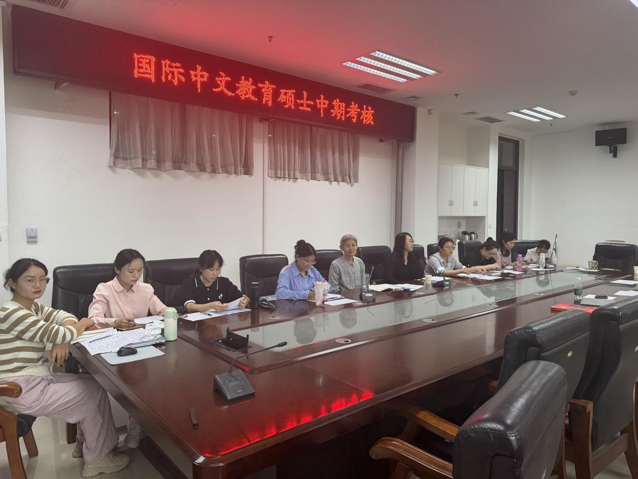 会议室顺利举行。汉语言文学系副主任吴亮担任评审组组长,国际中文教育专业全体导师、2023级全体研究生共同参会。