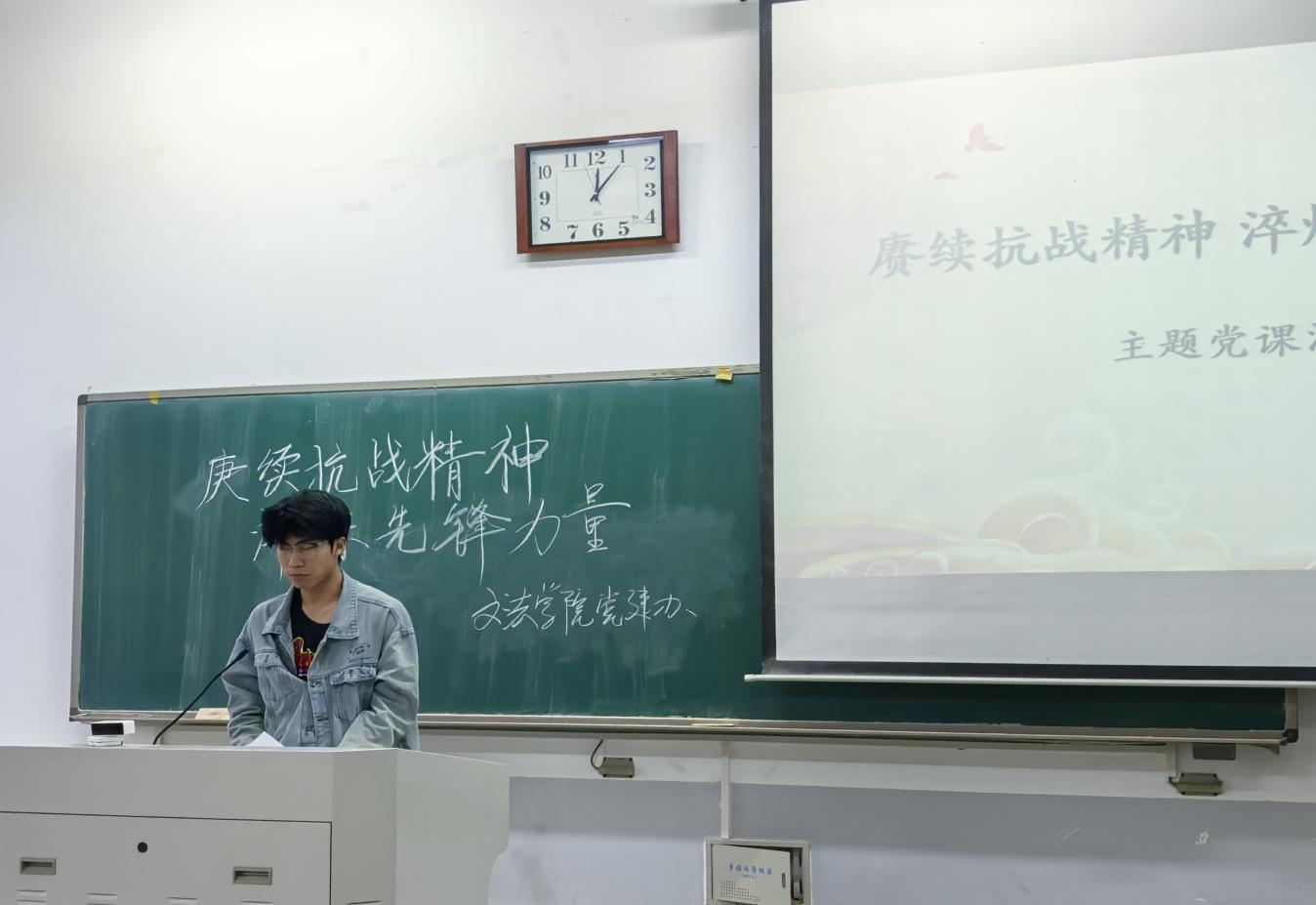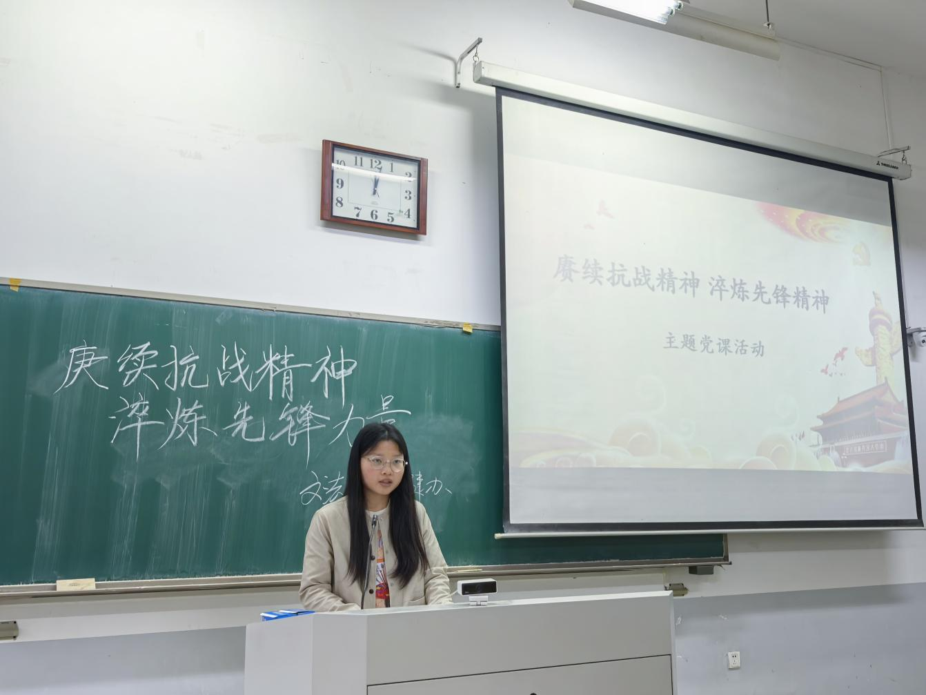 学生党支部于9月22日中午在龙子湖校区繁塔楼E107开展了以“赓续抗战精神,淬炼先锋力量”为主题的党课活动。