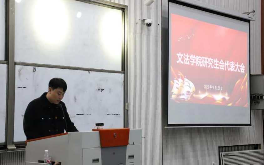 大会在庄严的国歌声中拉开帷幕,全体参会人员起立、肃立,奏唱国歌,现场气氛庄重热烈。会上,第十届研究生会主席团代表丁一玺向大会做述职报告,系统回顾过往工作实绩,深入剖析不足,并对新一届主席团的工作提出了针对性建议与展望。