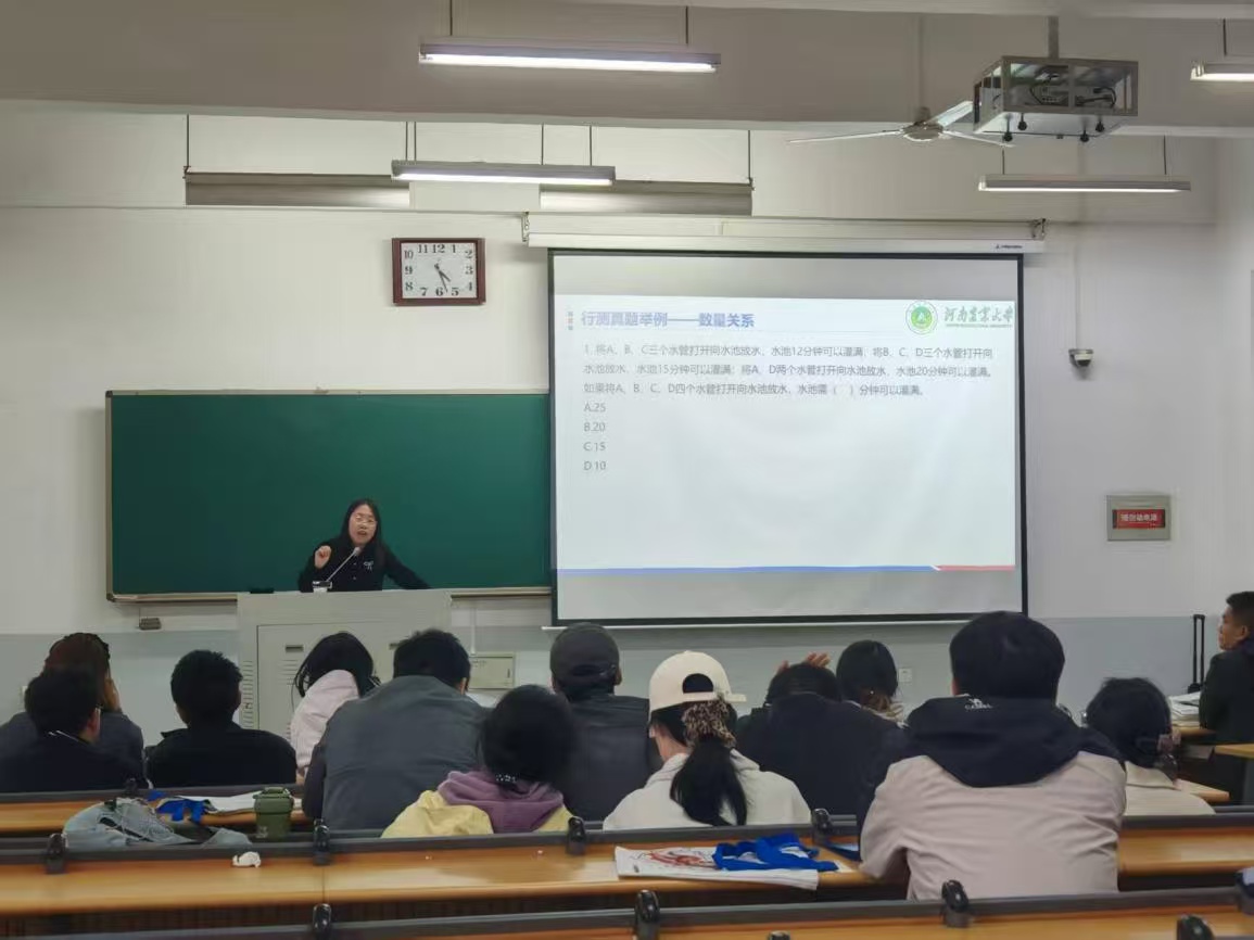 随后,在互动提问环节,学生就“应届生备考与毕业论文如何平衡”“跨专业报考注意事项”等问题向宣讲教师进行请教,并由宣讲教师进行逐一细致解答。宣讲会结束后,参会学生纷纷表示收获颇丰,不仅理清公考思路,也增强了备考信心。