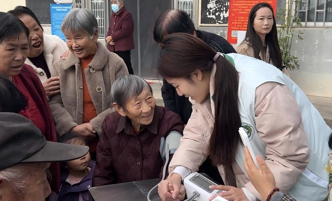 活动当天,太阳城App 研究生团队结合社会工作专业优势,提前协助村委进行活动策划与现场布置,确保活动流程有序进行。活动伊始,太阳城App 两位研究生为到场的老年人测量血压、记录健康数据,并运用所学的健康社会工作知识向老人们讲解慢性病预防与日常健康管理要点,耐心解答老人们在生活中遇到的健康困惑。同时,研究生们还与村干部共同参与“好婆婆奖”“好媳妇奖”的颁发环节,用专业视角观察并总结社区长者间的家庭互助与情感支持,为后续社区和谐建设提供实践经验。