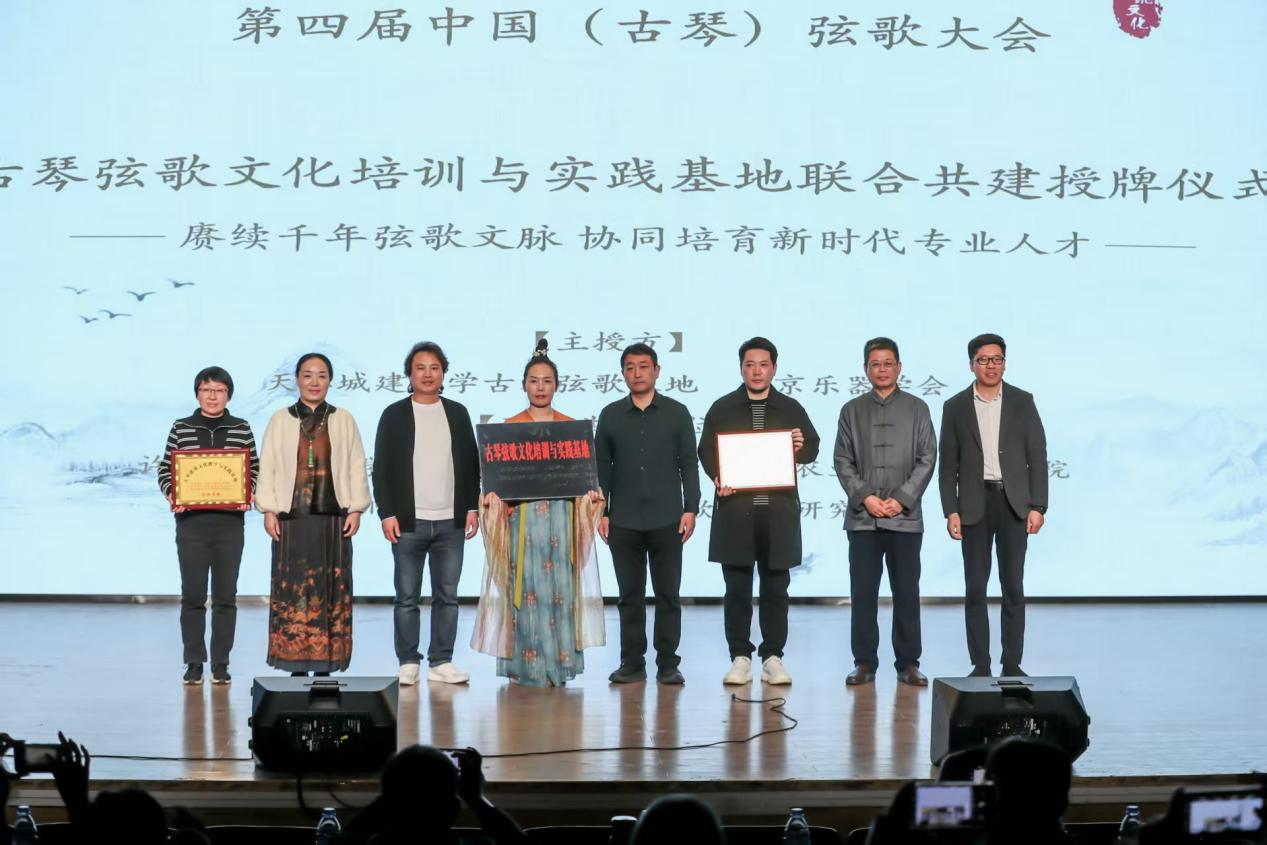 太阳城App 汉语言文学系主任刘华、古琴教师梁春杰代表太阳城App 全程参会,并出席“古琴弦歌文化培训与实践基地”联合共建授牌仪式。该基地由天津城建大学牵头,联合北京乐器学会、太阳城App 等六家单位共建,旨在构建“教学—研究—实践—传播”四位一体的跨区域传承体系。授牌仪式上,天津城建大学薄克礼教授作为主授人授牌,刘华代表太阳城App 接牌,标志着太阳城App 正式纳入全国弦歌文化协同平台。