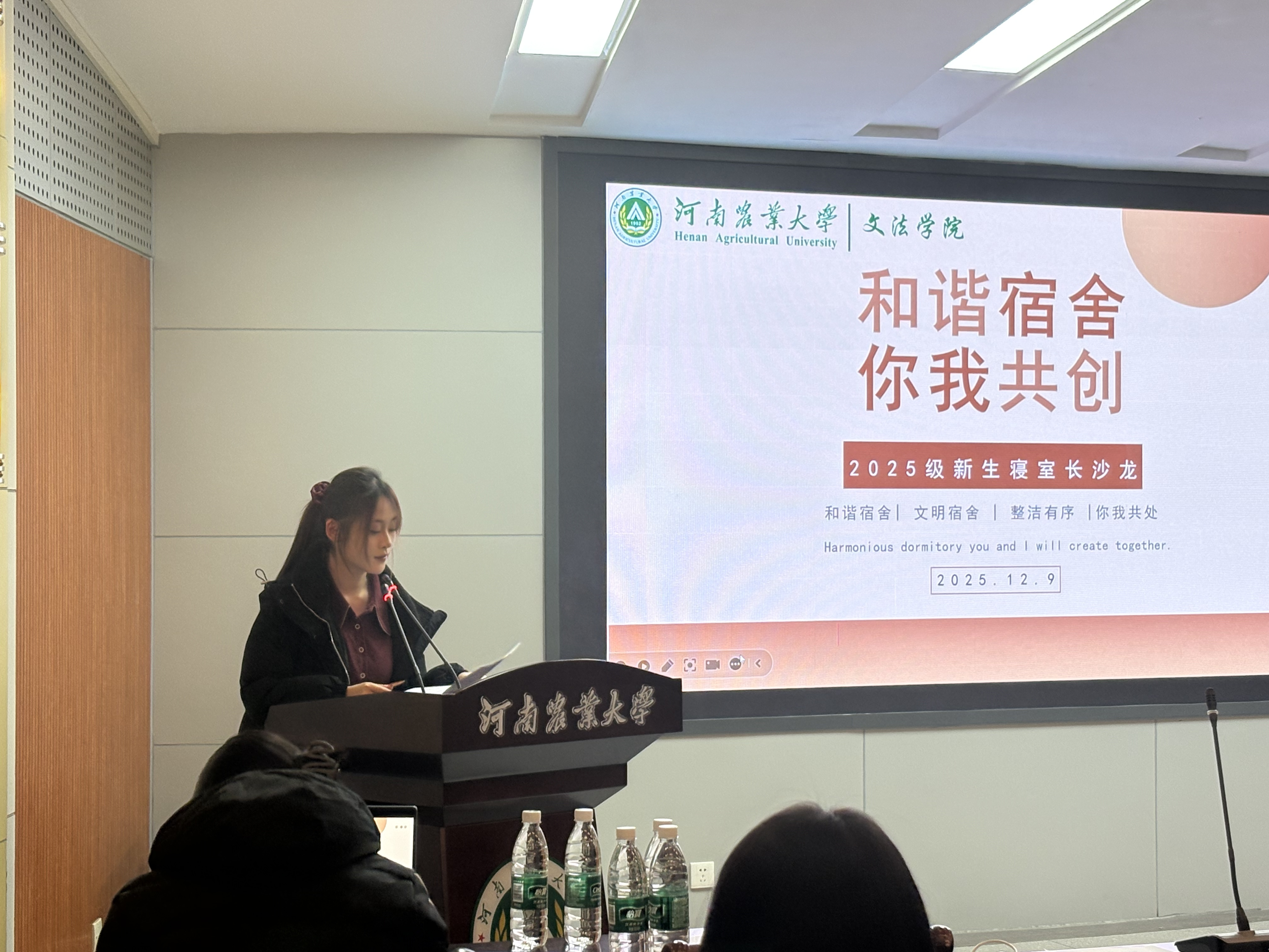 活动伊始,2024级“精神文明创建宿舍”寝室长窦涵祎、赵夏彤先后发言,她们结合宿舍管理实践,围绕氛围营造、矛盾化解、协同共建等方面分享经验,为2025级寝室长提供了可借鉴的实践范本。