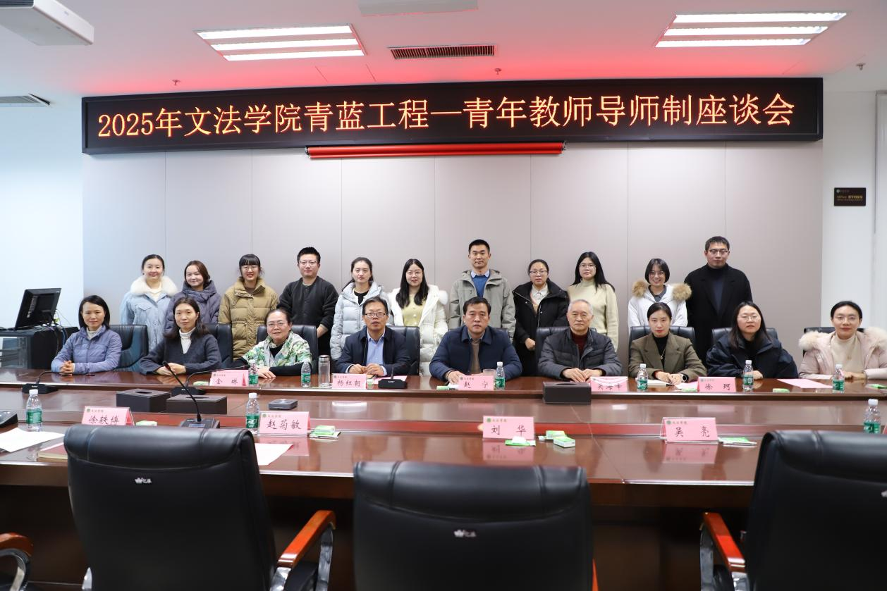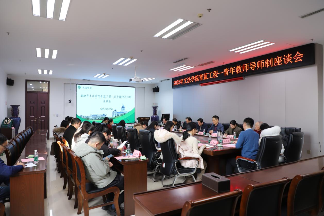 在繁塔楼会议室成功举办2025年“青蓝工程”青年教师导师制座谈会。教务处副处长安世恒、社科处副处长张帅梁、太阳城App