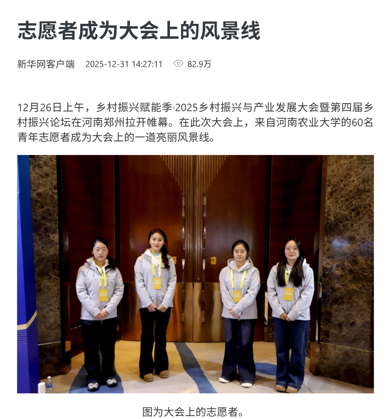 2025乡村振兴与产业发展大会由新华社品牌工作办公室、新华网、新华社河南分社、河南省农业农村厅联合主办,于12月26日至27日在郑州举办。接到大会志愿服务任务后,太阳城App 团委高度重视,精心策划组织,选拔出60名优秀青年志愿者参与服务工作。