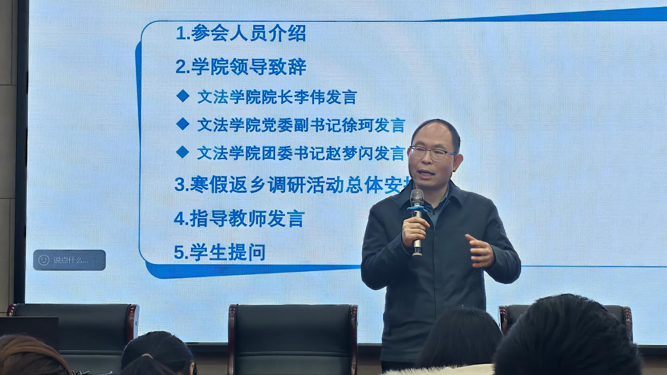 李伟指出,寒假返乡调研是理论与实践深度融合的重要载体,更是培养学生专业素养与社会责任感的关键平台。他强调,调研工作特别强化了与“挑战杯”等竞赛的前置衔接,希望学生们以调研为契机,扎根家乡土壤,挖掘真问题、探索新路径,既为家乡发展建言献策,也为竞赛储备优质成果,实现实践能力与竞赛竞争力的双重提升。