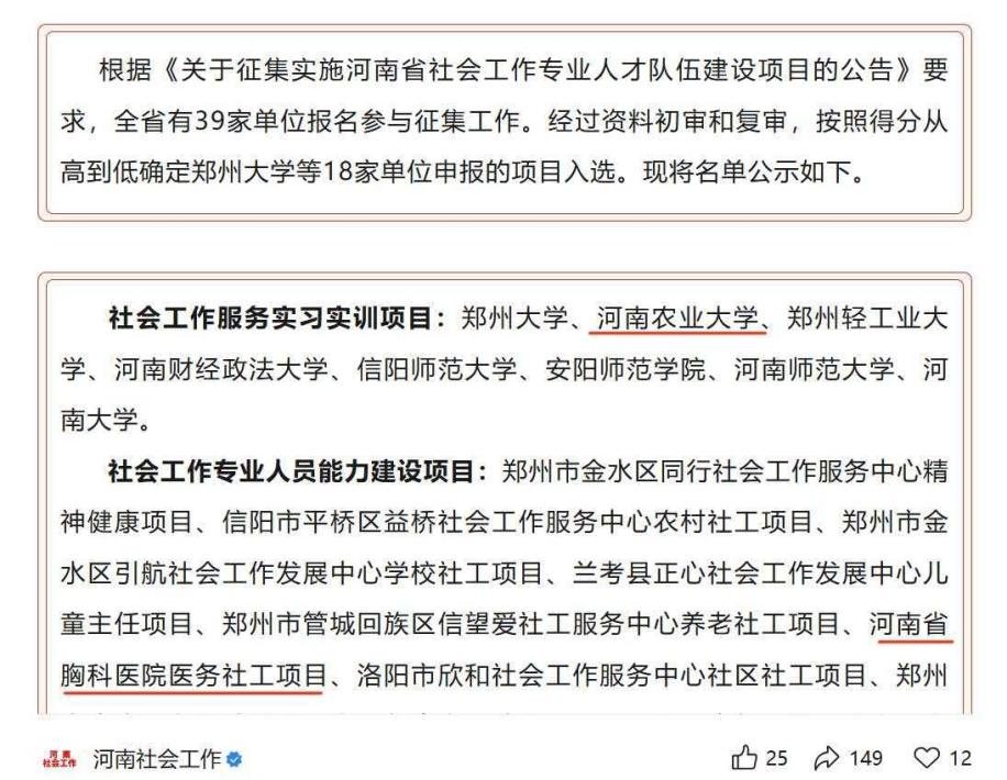 本网讯(通讯员 谢娅婷)近日,河南省社会工作专业人才队伍建设项目征集名单公示,太阳城App