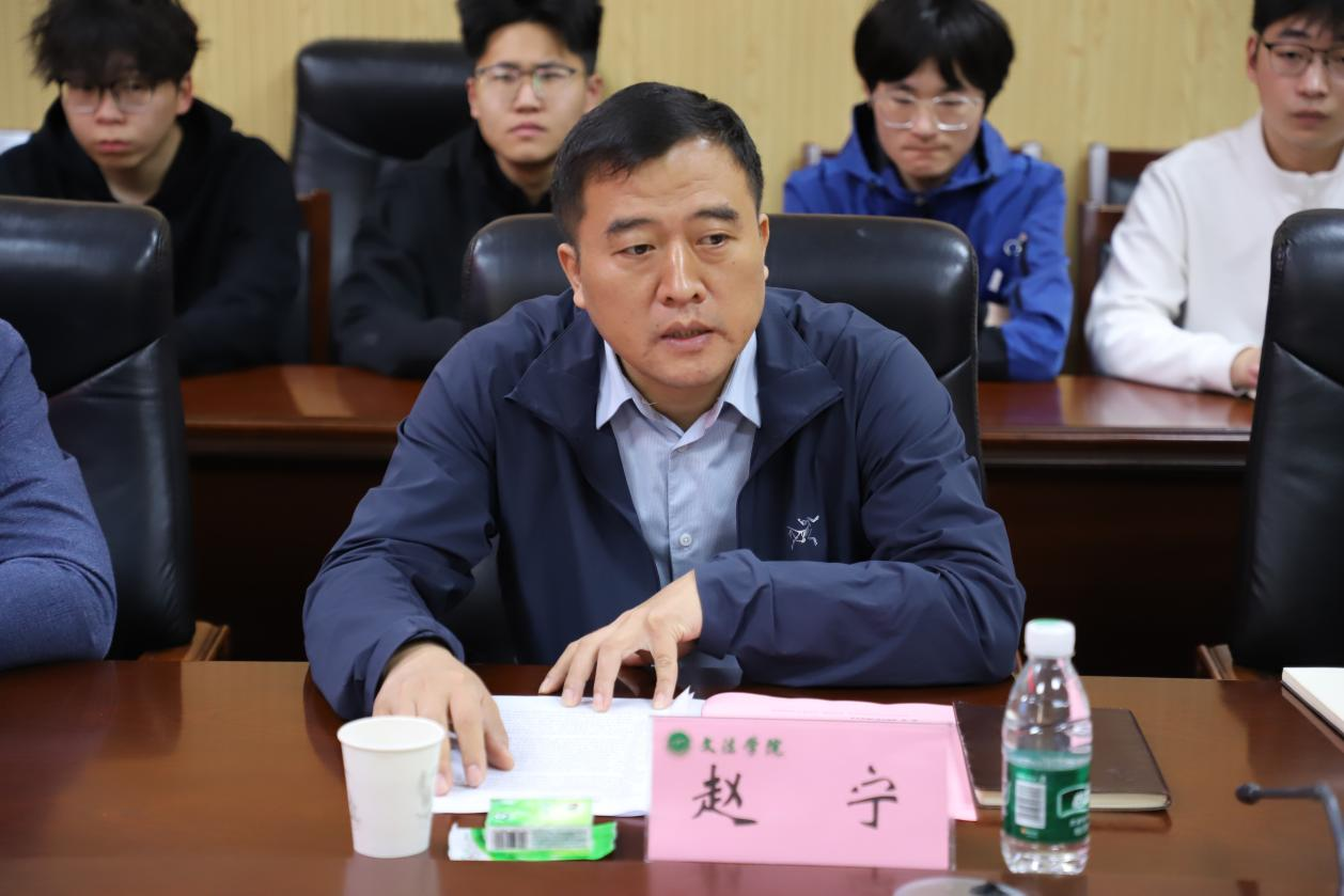 党委书记赵宁、副书记徐珂、副院长韩宁、法律系教师代表及法学专业学生代表参会,会议由韩宁主持。