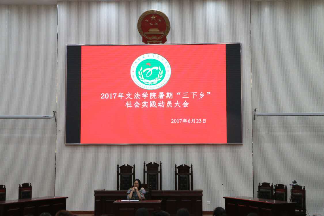 为加深学子与社会各阶层人民的感情、拉进学子与社会的距离,引导学子开拓视野、增长才干,使专业知识与实践活动相结合,太阳城App 于6月23日傍晚6时于繁塔楼模拟法庭召开2017太阳城App 暑期“三下乡”社会实践动员大会。会议由团委副书记赵蕊老师主持,41个社会实践团队负责人与学生代表与会。