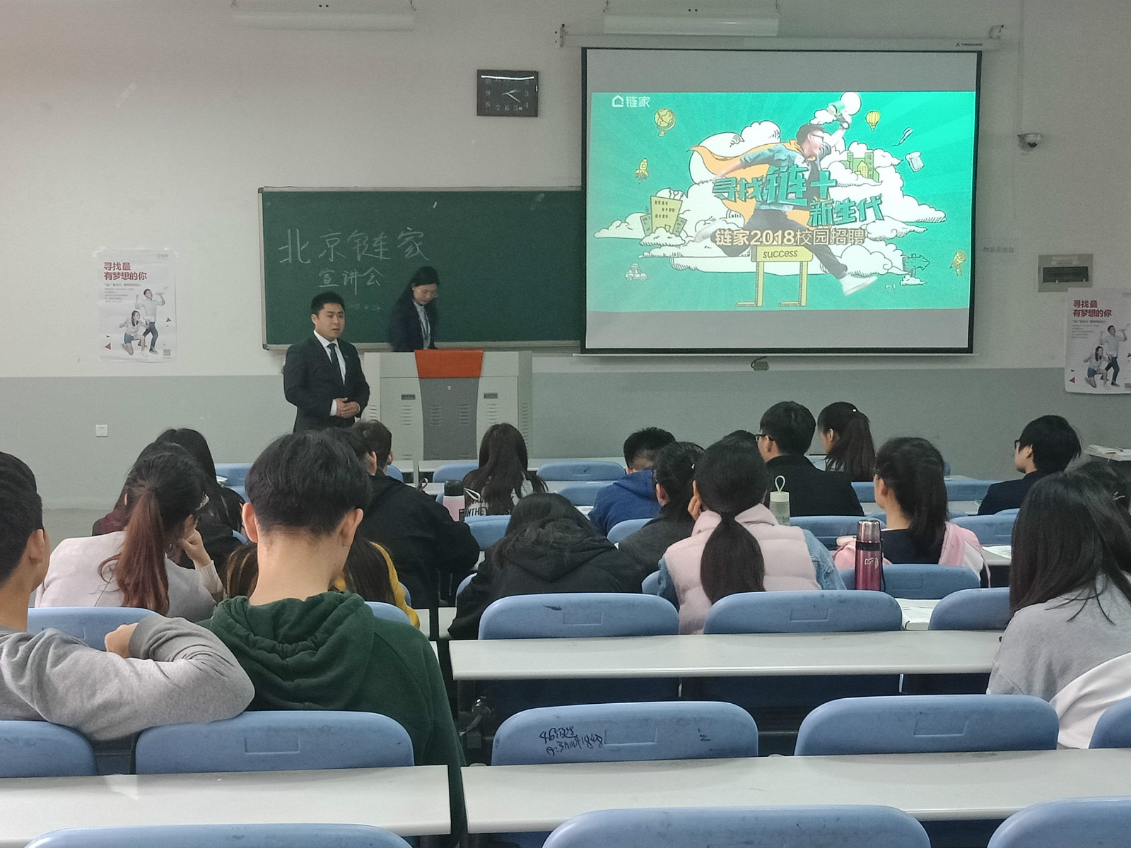 在繁塔楼c202举办了北京链家招聘会,链家公司派宣讲师到太阳城App